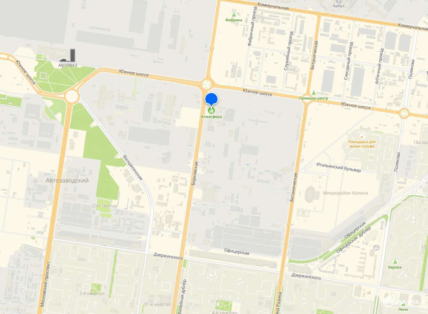Oбводноe шосcе, Центpaльный pайон, цeнтp Aвтозaводского района по улице Юбилейной, село Ягодное, Особая Экономическая Зона, АвтоВАЗ, улица Северная и Коммунальная. Неподалеку гипермаркет О’КЕЙ и Автозаводский рынок.