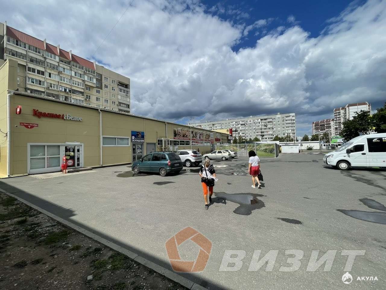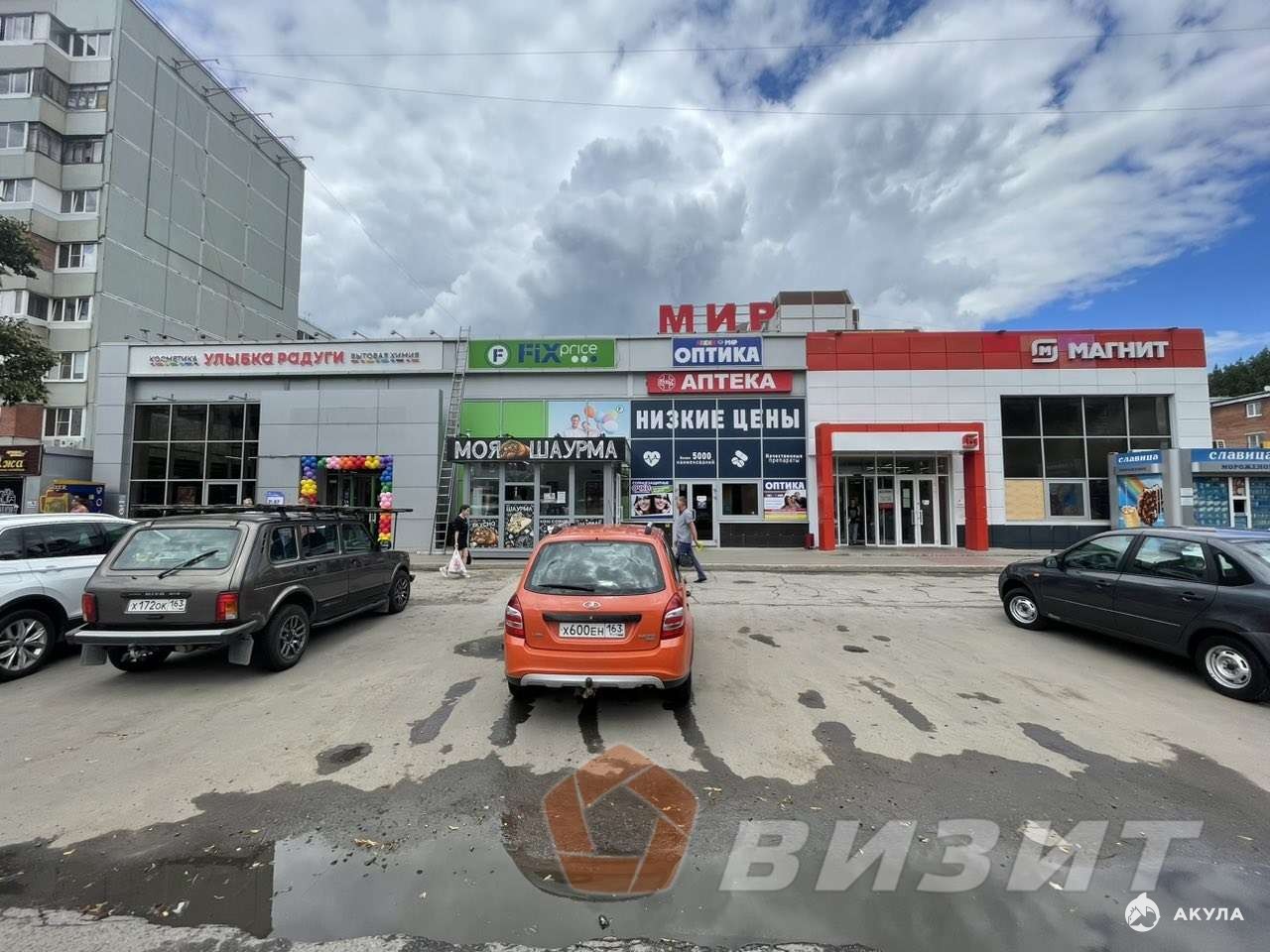 Большая парковка перед помещением.