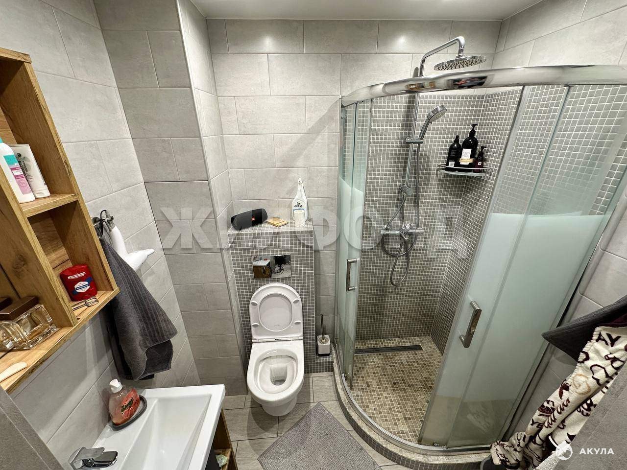 Санузел - образец роскоши и функциональности. Установлена премиальная сантехника Grоhе (смесители, термостат, тропический душ) и инсталляция от Gibеrit и Jасоbs Dеlаfоn. Отделка санузла плиткой керамогранит и мозаикой в душевой, а также встроенная вытяжка.