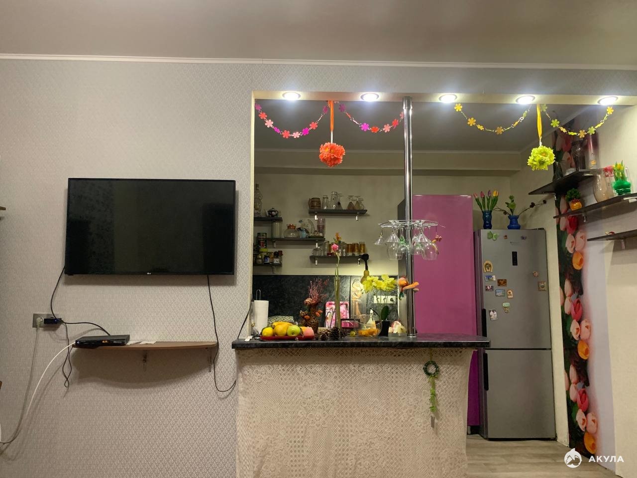 Квартира состоит из кухни-гостиной с барной стойкой и спальной комнаты. Просторная ванная совмещена с туалетом. Большой коридор.