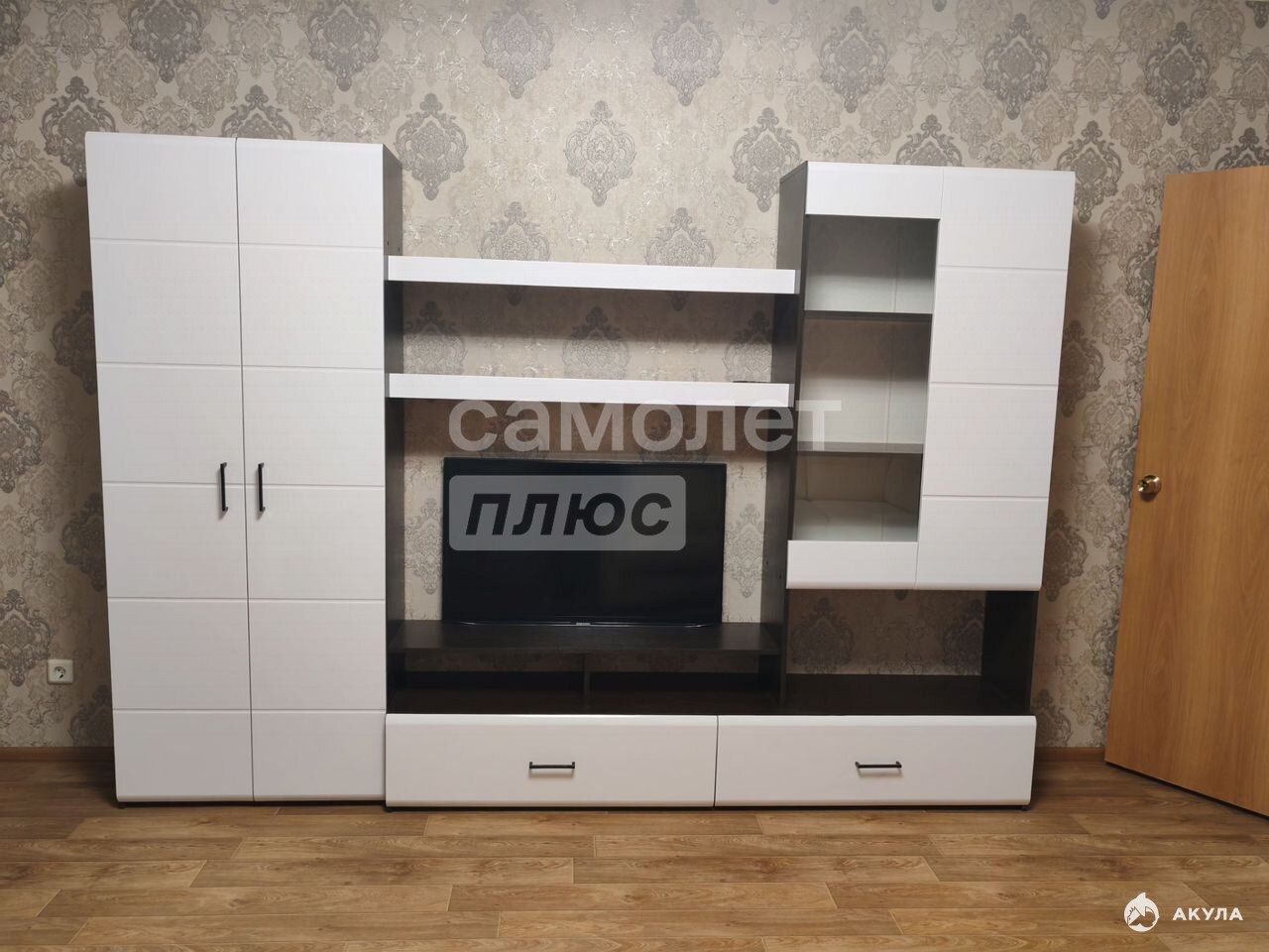 1. Мебель и техника: Есть всё необходимое для жизни (диван, стенка, ТВ, кондиционер, системы хранения).